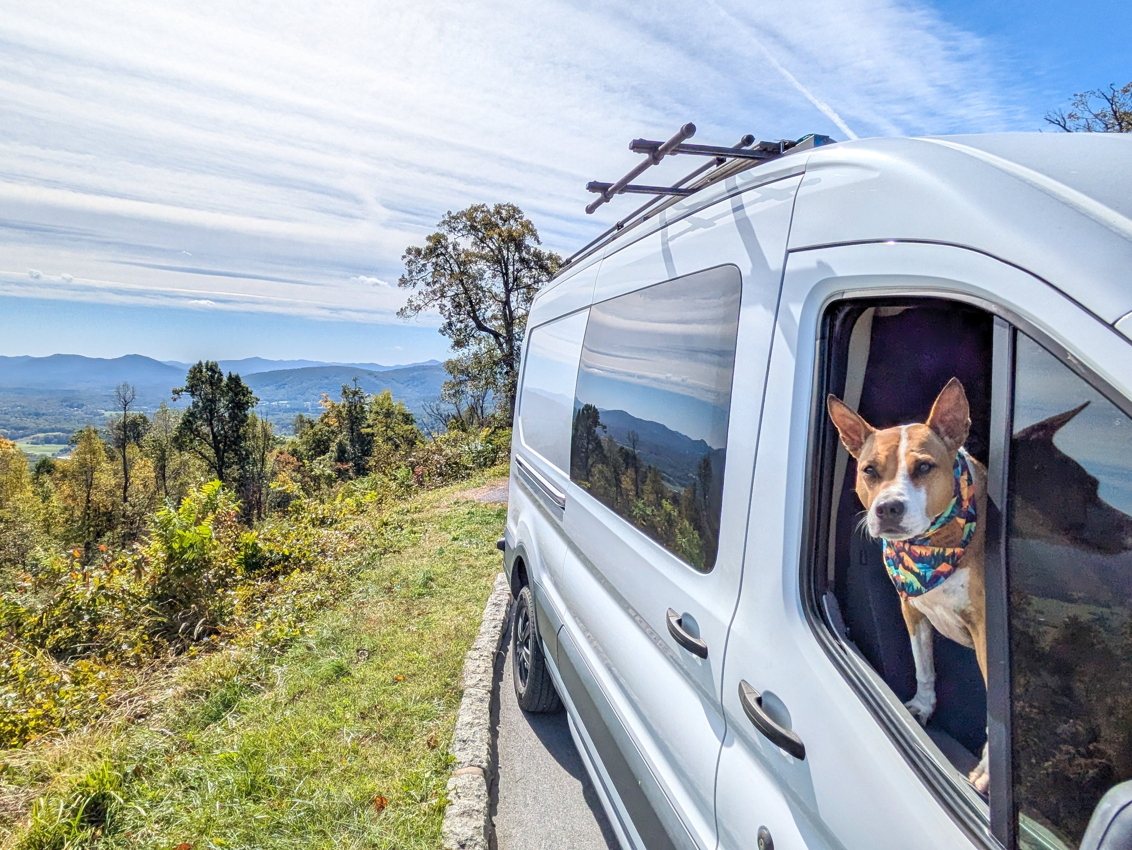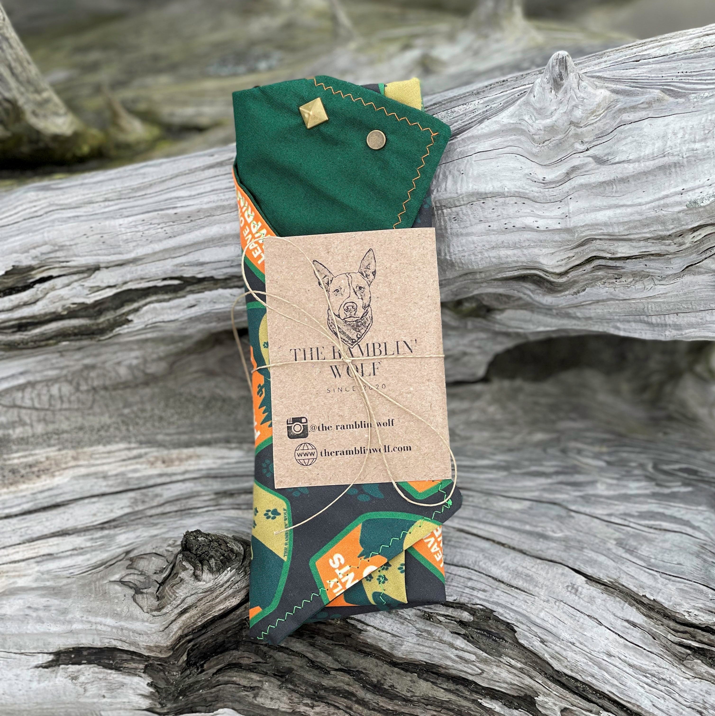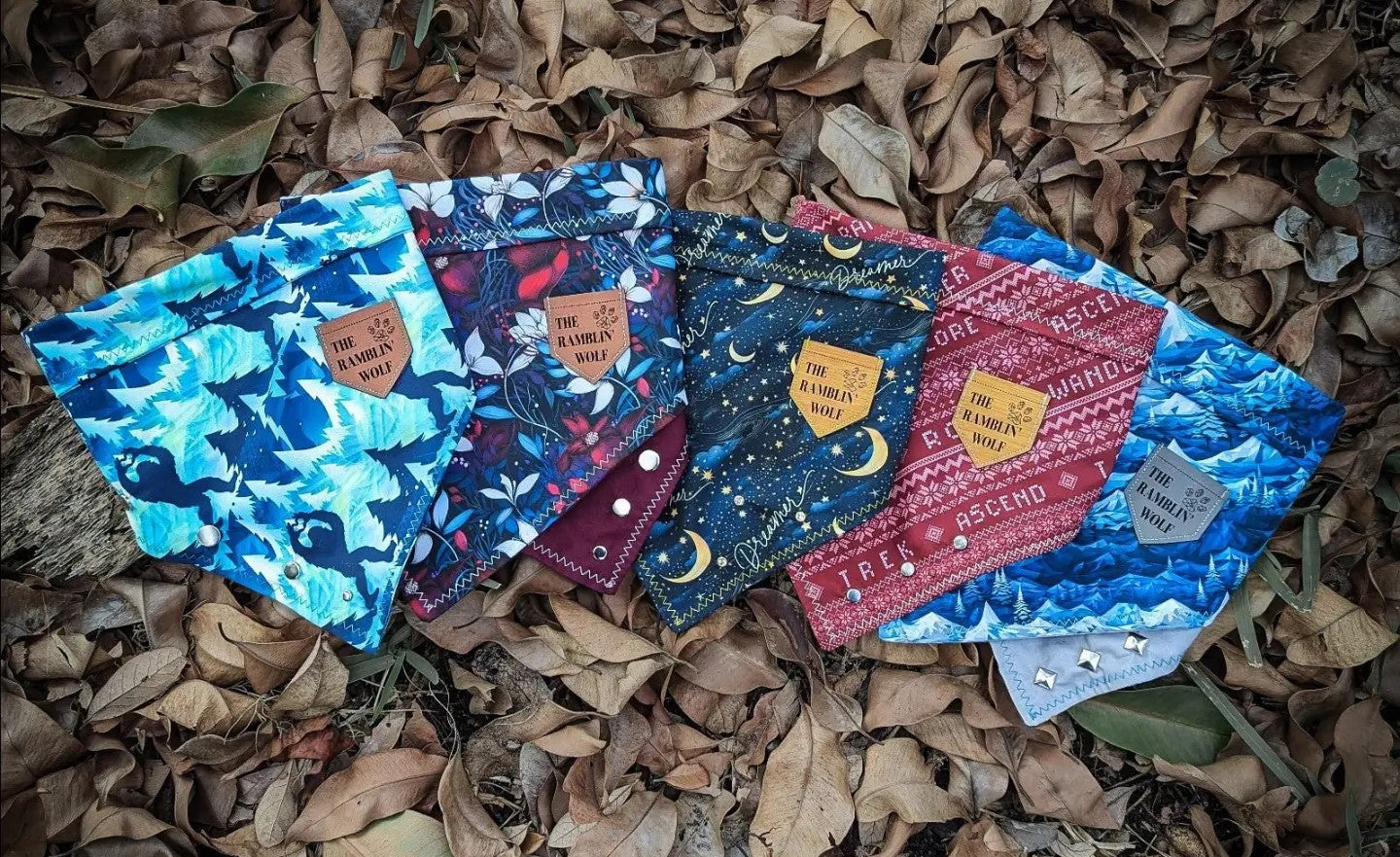 I'm the maker behind The Ramblin' Wolf, where I design and create adventure-proof dog bandanas from our 160 sq. ft. home on wheels. My husband, Caleb, our soul pup Azula, and I have been traveling the U.S. full time since 2017, exploring 26 states and counting.